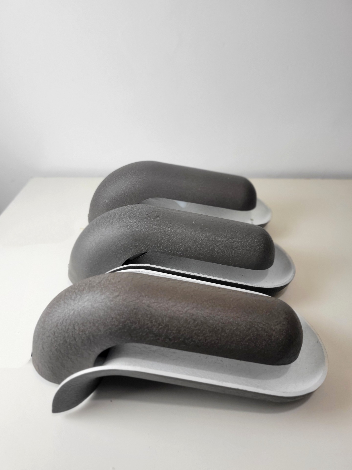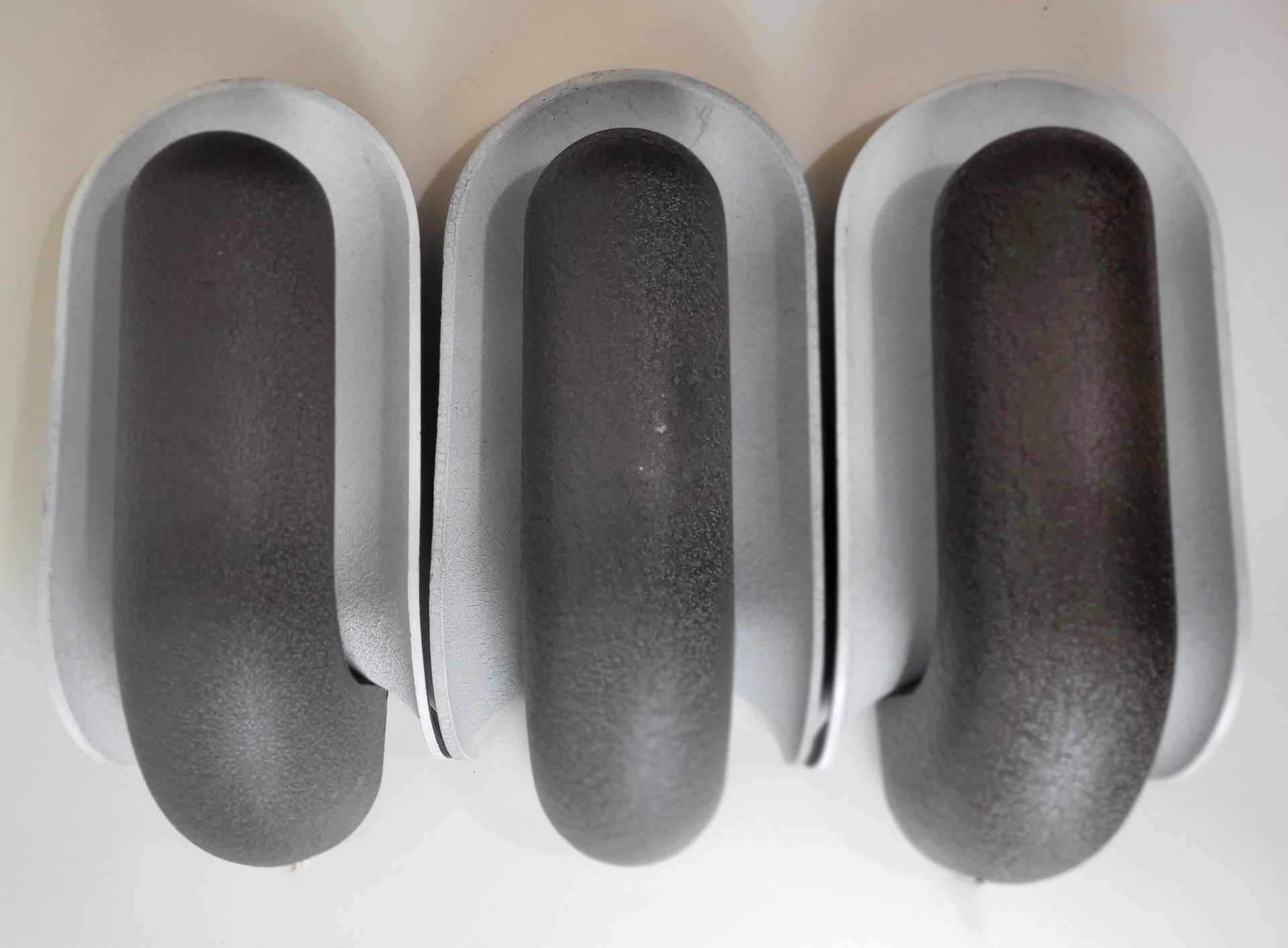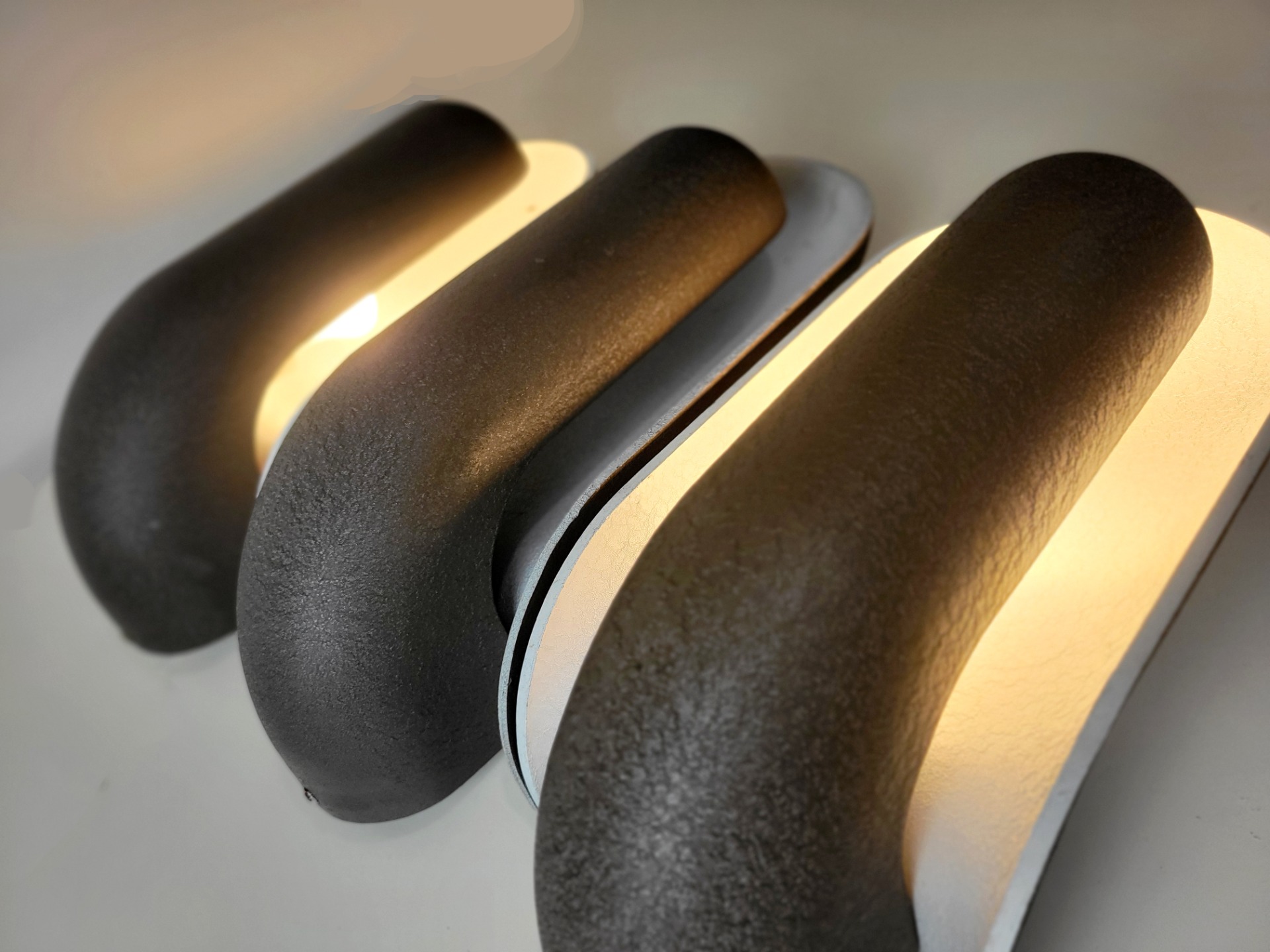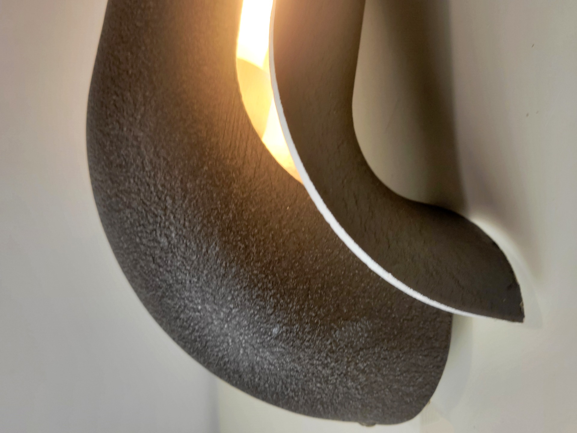Set van 3 vintage wandlampen ontworpen door Piet Cohen voor Raak Amsterdam. Bijzonder fraaie wandlamp, waarin het licht uit zijn schulp kruipt; een exotisch schaaldier van gegoten aluminium met een concentrische tweede schelp waarachter het licht op subtiele wijze vandaan kruipt. De set van de drie bruine Schelpdier wandlampen verkeren in nette vintage conditie. Twee lampen hebben enkele lichte gebruikssporen. Eén verkeert in zeer goede staat gezien de leeftijd.