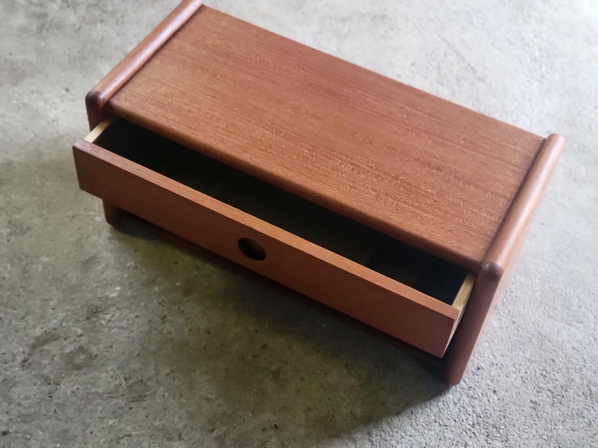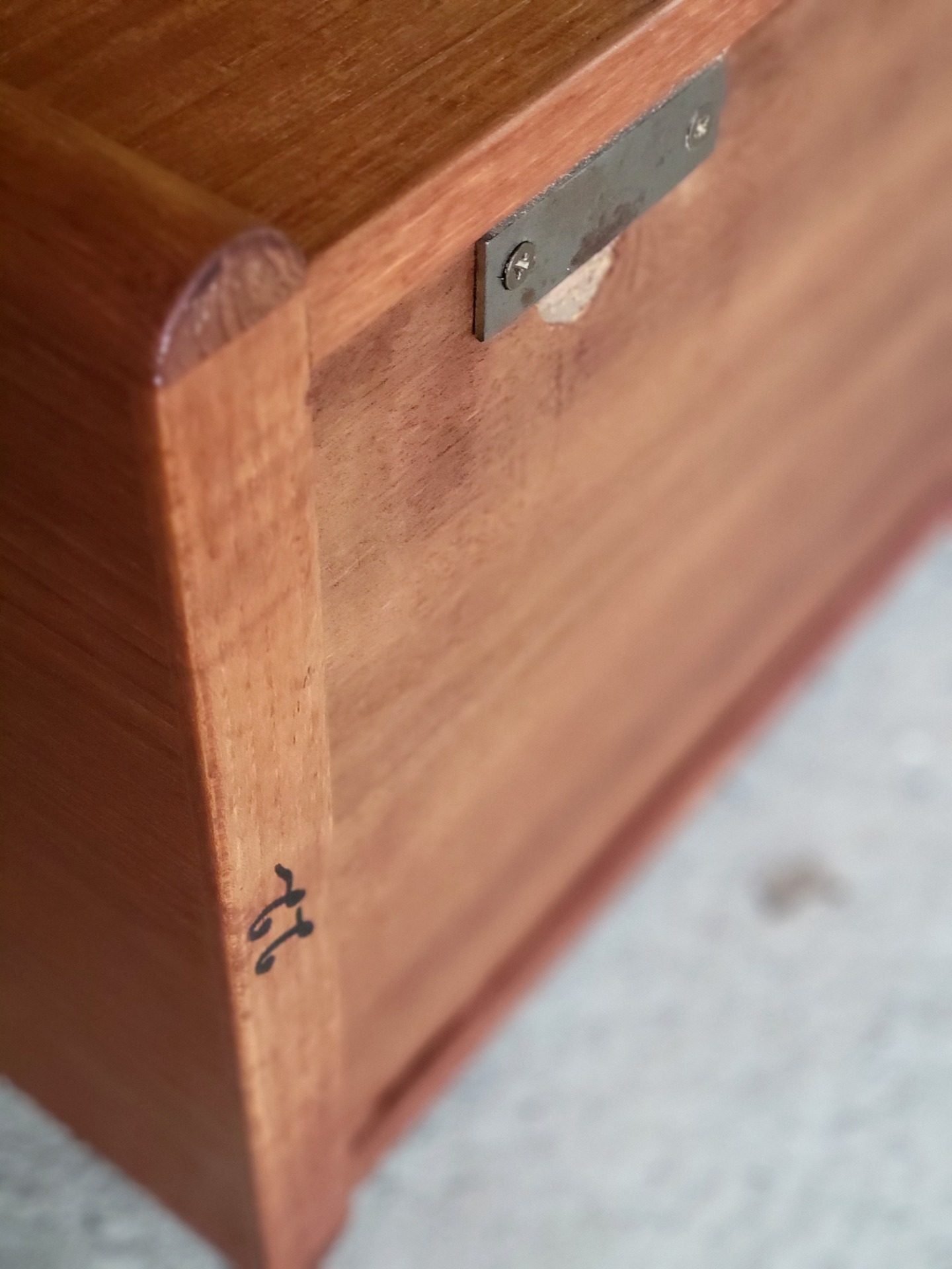 Kai Kristiansen staat bekend om zijn verfijnde ontwerpen die functionaliteit en esthetiek naadloos combineren. Zijn ontwerpen, gekenmerkt door strakke lijnen en een minimalistische stijl, passen moeiteloos binnen zowel klassieke als moderne interieurstijlen. Het meubel verkeert in nette staat met enkele sporen van gebruik aan de onderzijde. ( Er zijn ooit eens pootjes onder gemonteerd).